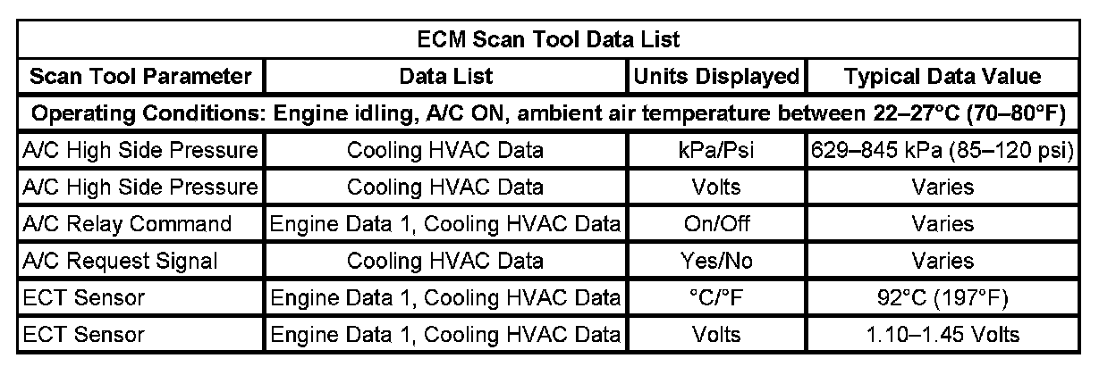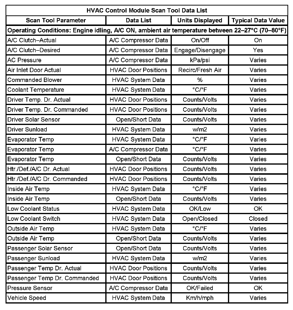 HVAC Control Module Scan Tool Data List: