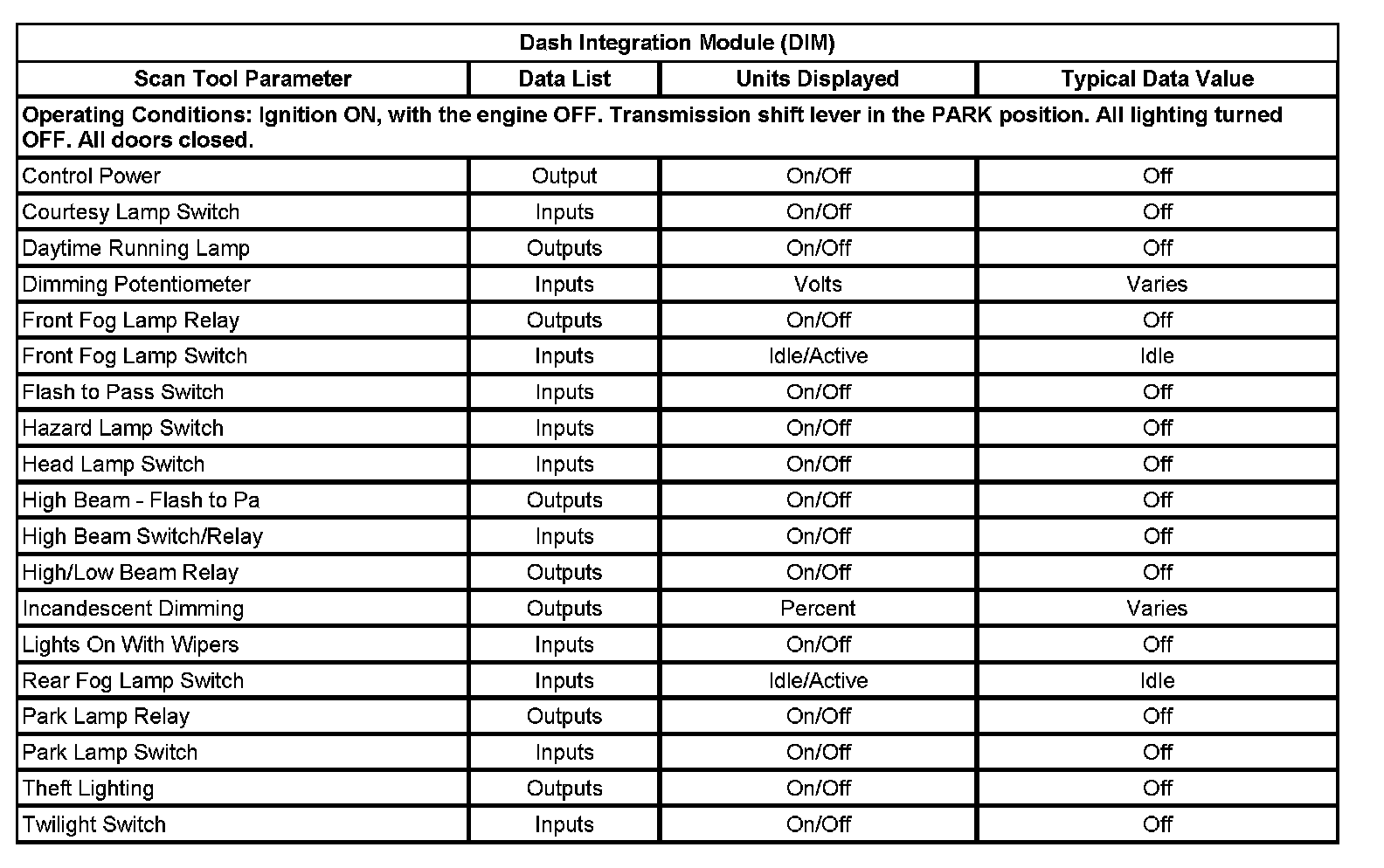 Scan Tool Data List