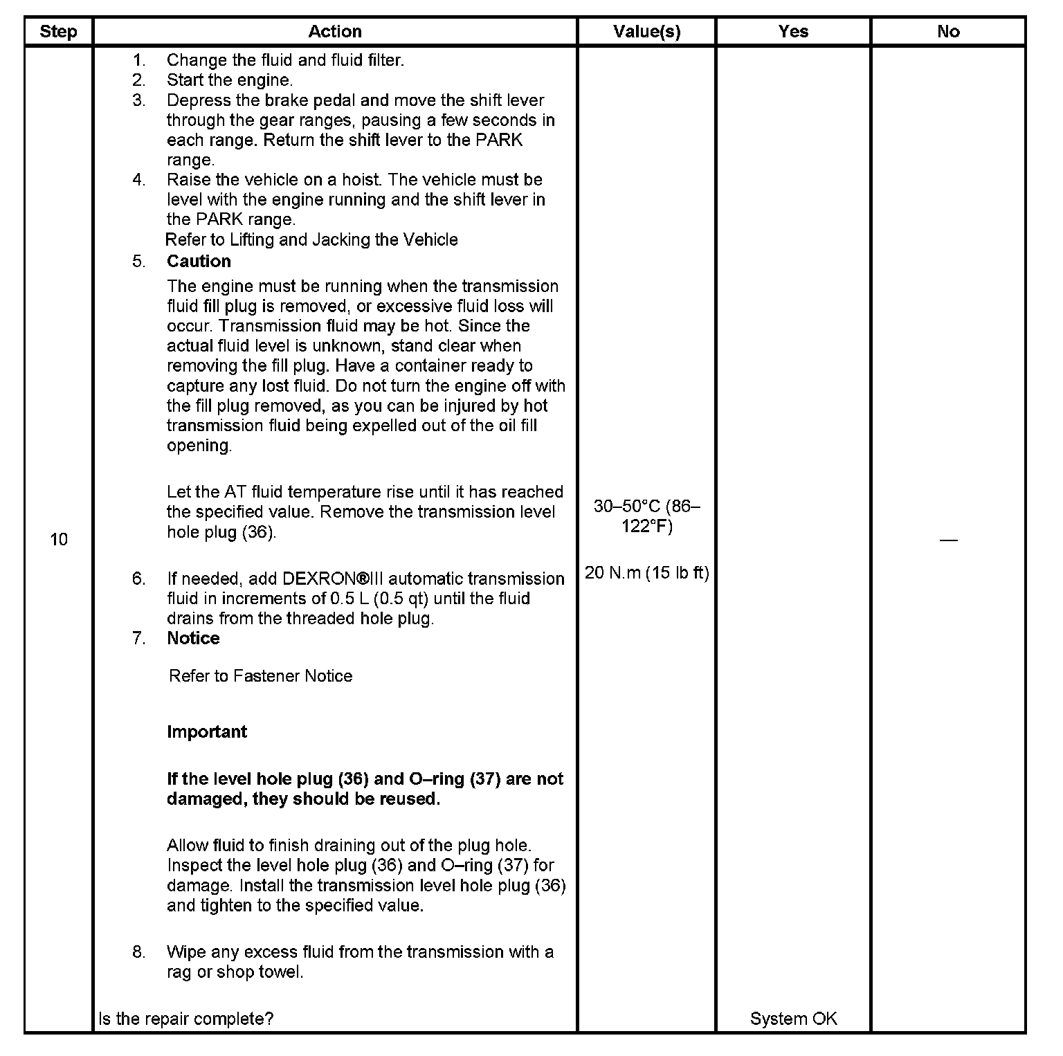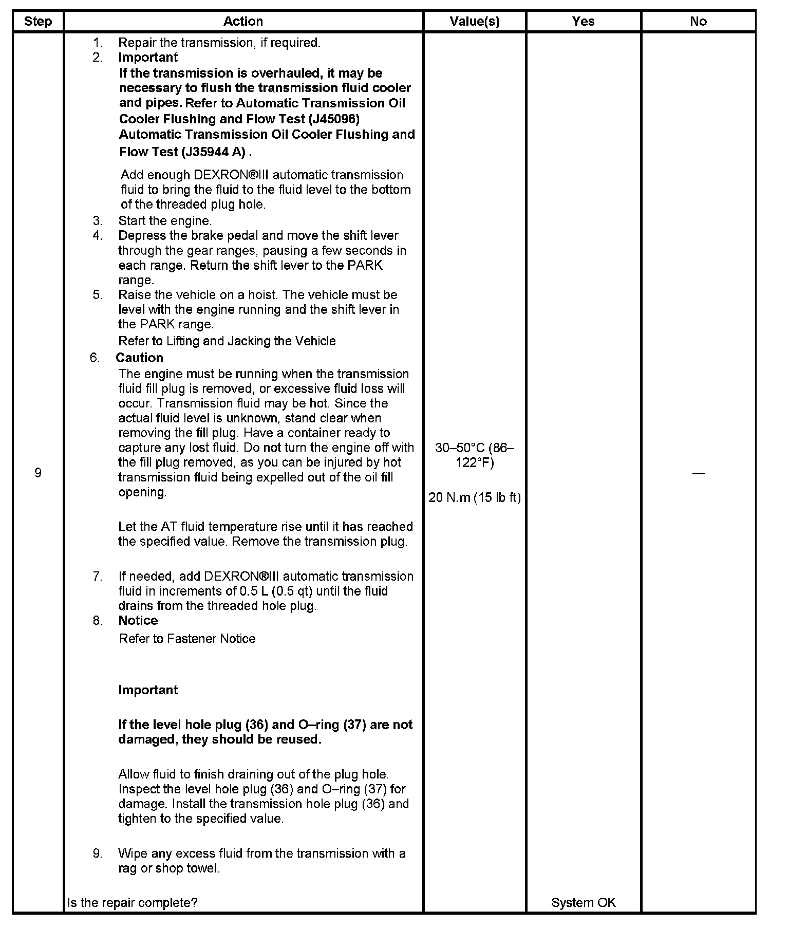 Transmission Fluid Checking Procedure