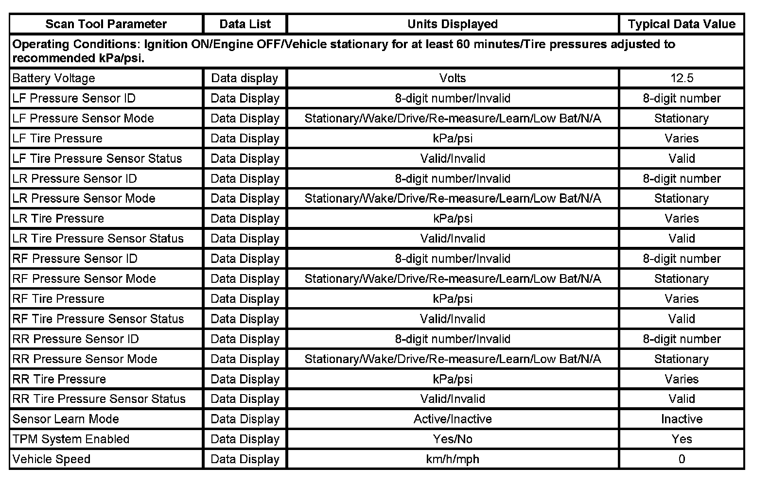 Scan Tool Data List: