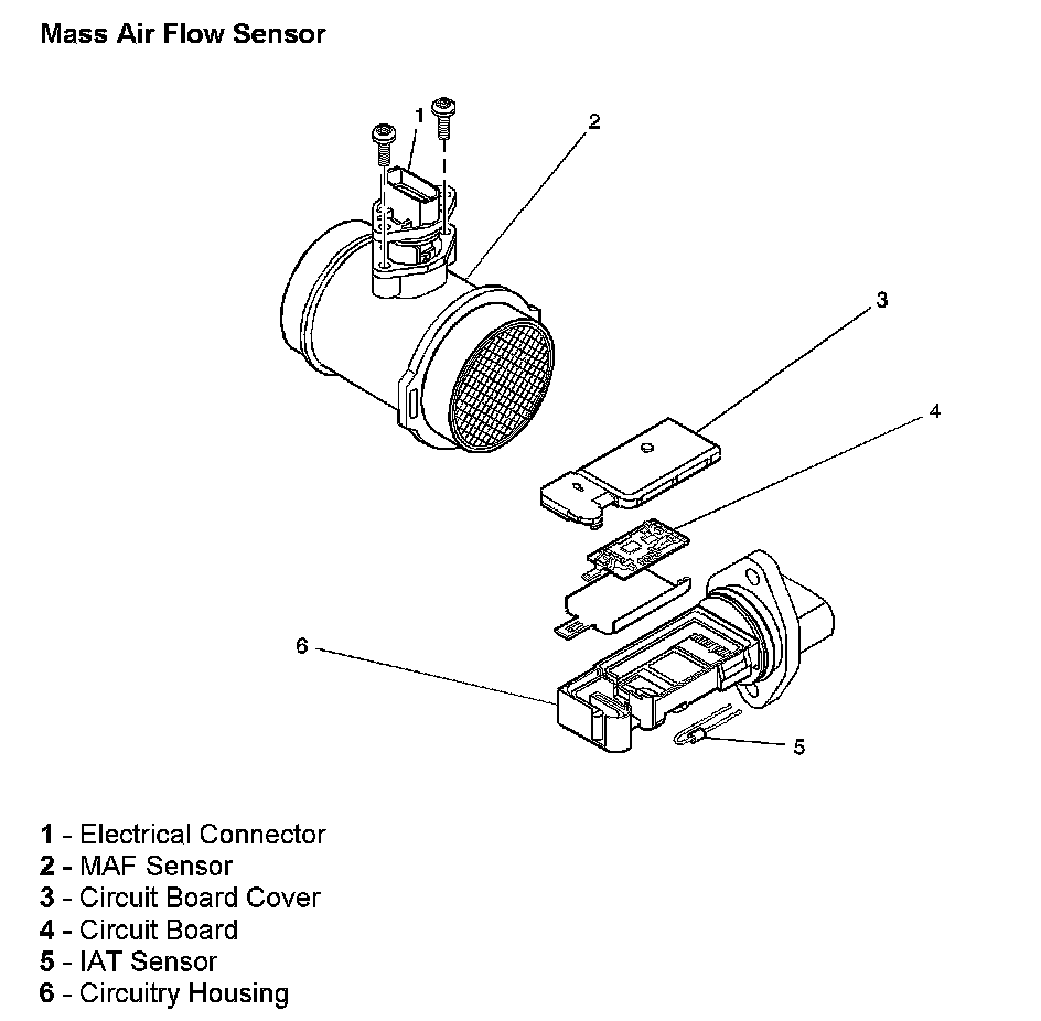The MAF sensor measures the amount of air coming into the engine. This direct airflow measurement is more accurate than the calculated airflow information obtained from the other sensor inputs. The MAF sensor also houses an integrated intake air temperature (IAT) sensor. The MAF sensor uses the following circuits:
