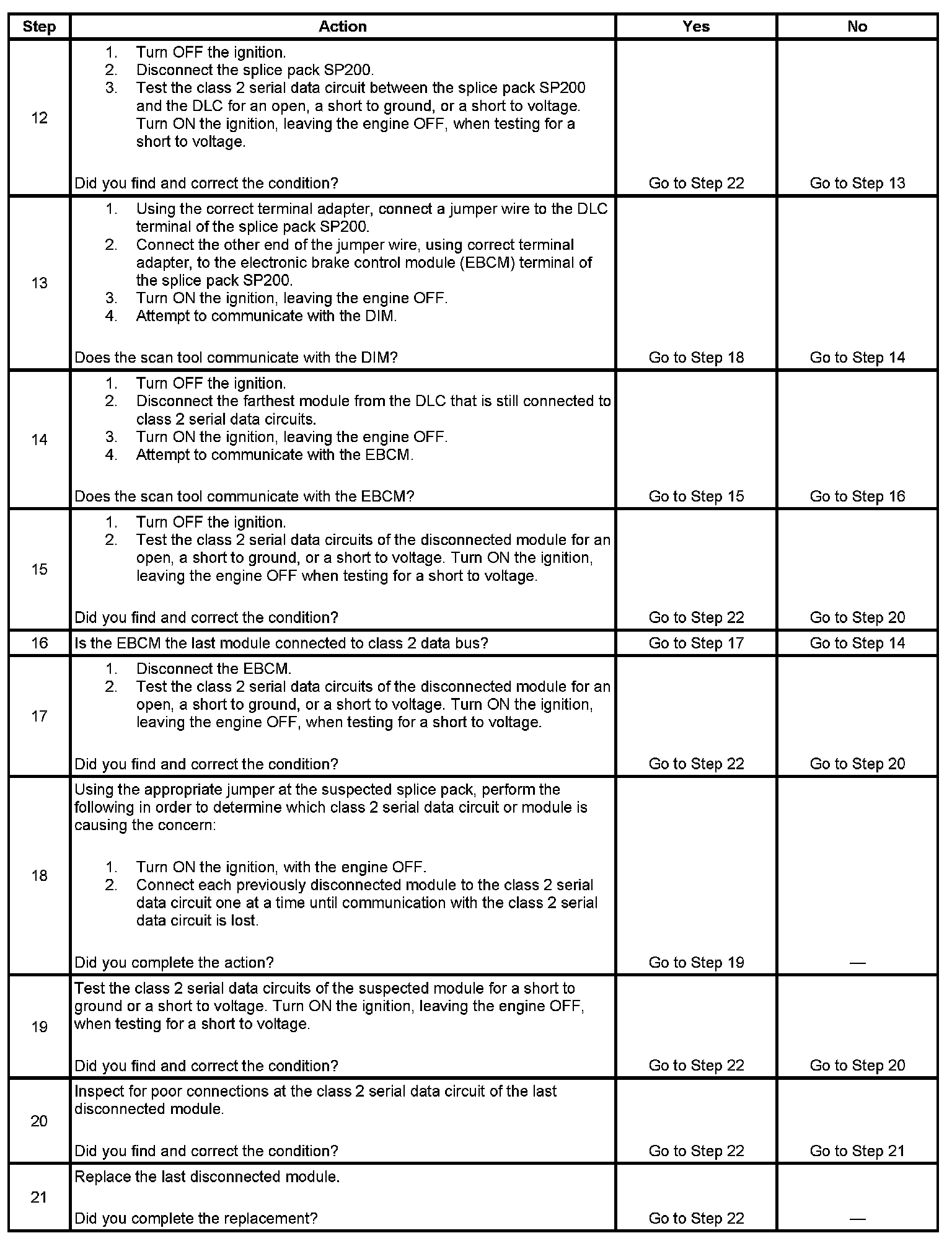 18. This test localizes the class 2 serial data circuit of the suspected bus that is shorted.