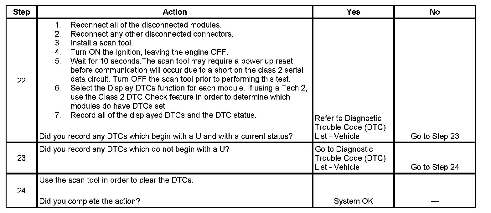 22. If there are no current DTCs that begin with a U, the communication malfunction has been repaired.