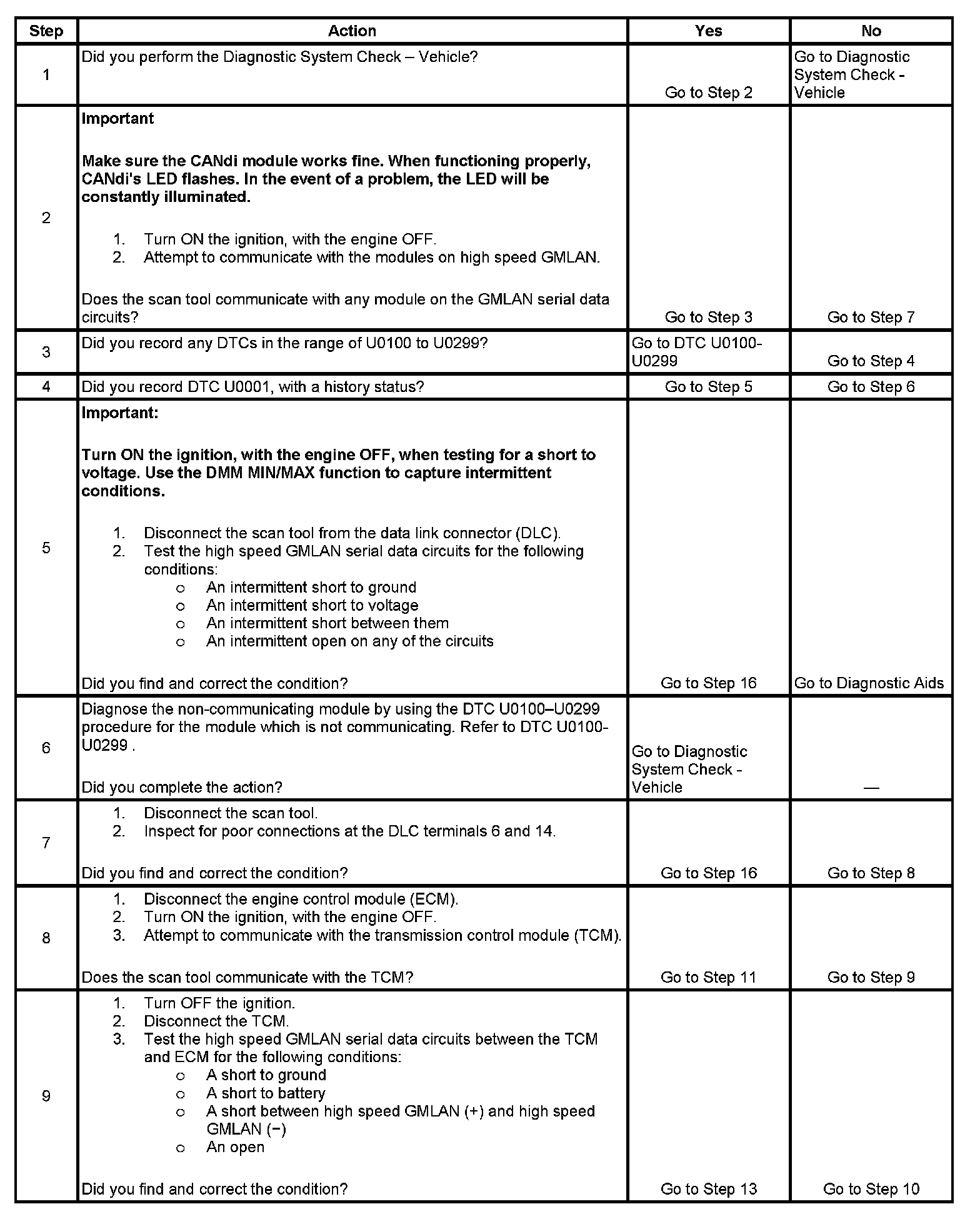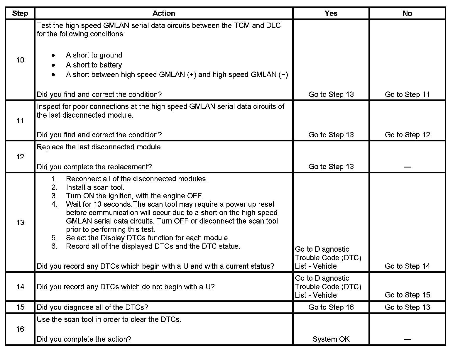 - A short between high speed GMLAN (+) and high speed GMLAN (-) circuits