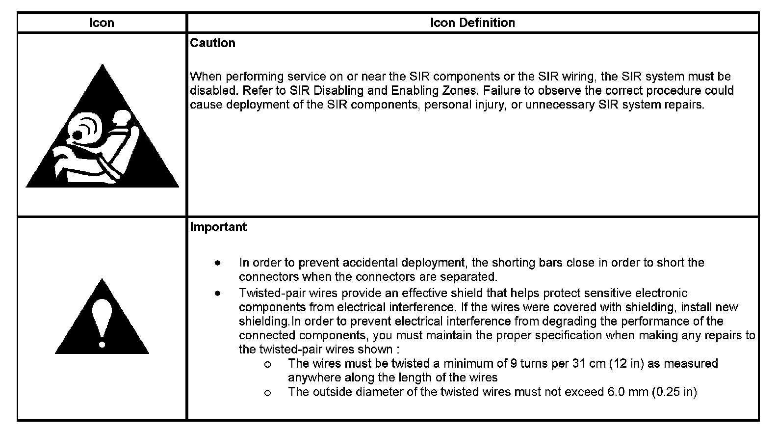 Air Bag System Schematic Icons