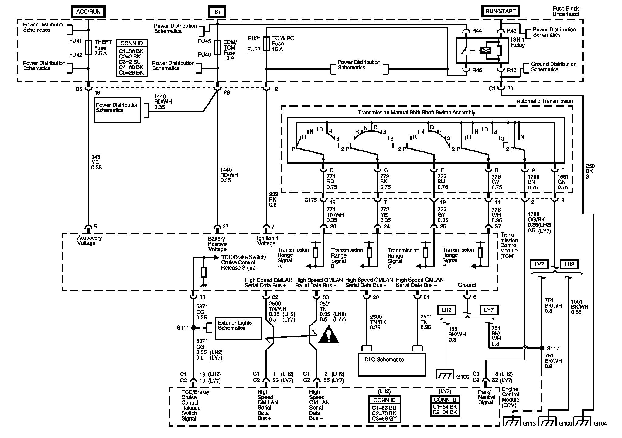 Locations: The locations for the Connectors, Grounds, Splices, and Grommets shown within these diagrams can be found via their numbers at Vehicle Locations. Locations