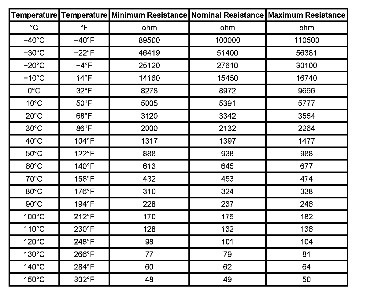 Transmission Fluid Temperature (TFT) Sensor Specifications: