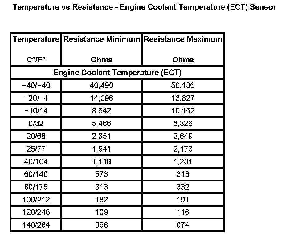 Temperature vs Resistance - Engine Coolant Temperature (ECT) Sensor:
