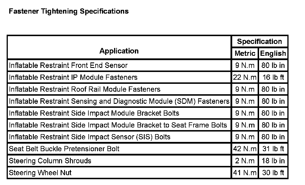 Fasteners Tightening Specifications: