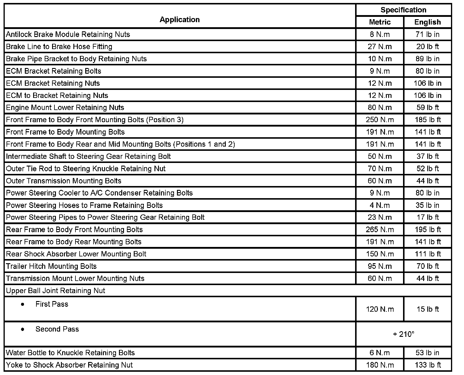 Fastener Tightening Specifications