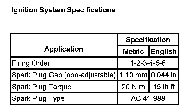 Ignition System Specifications: