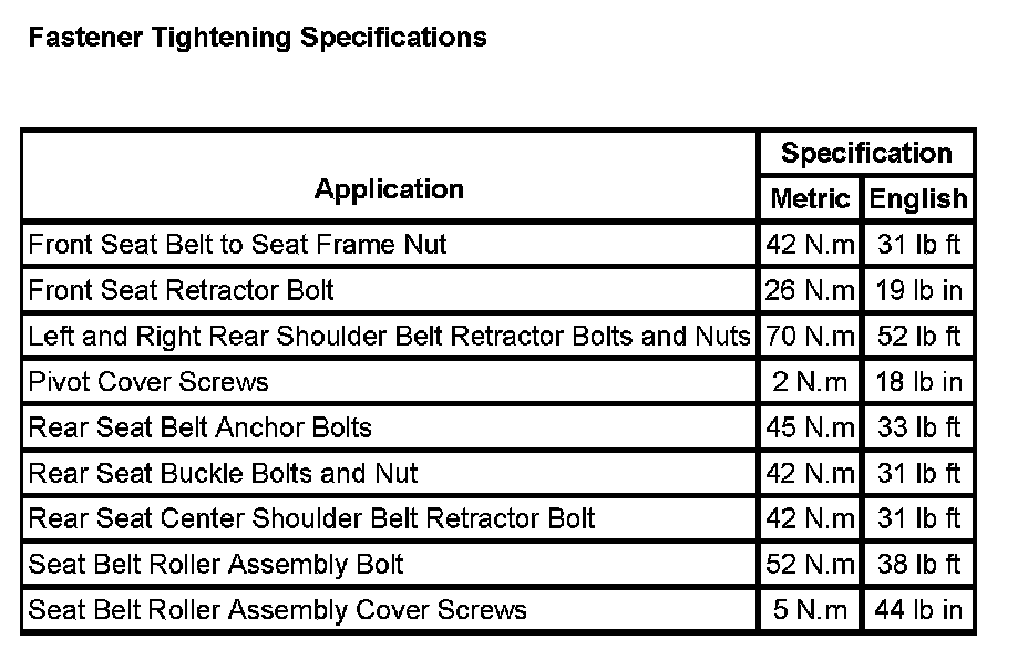 Fastener Tightening Specifications:
