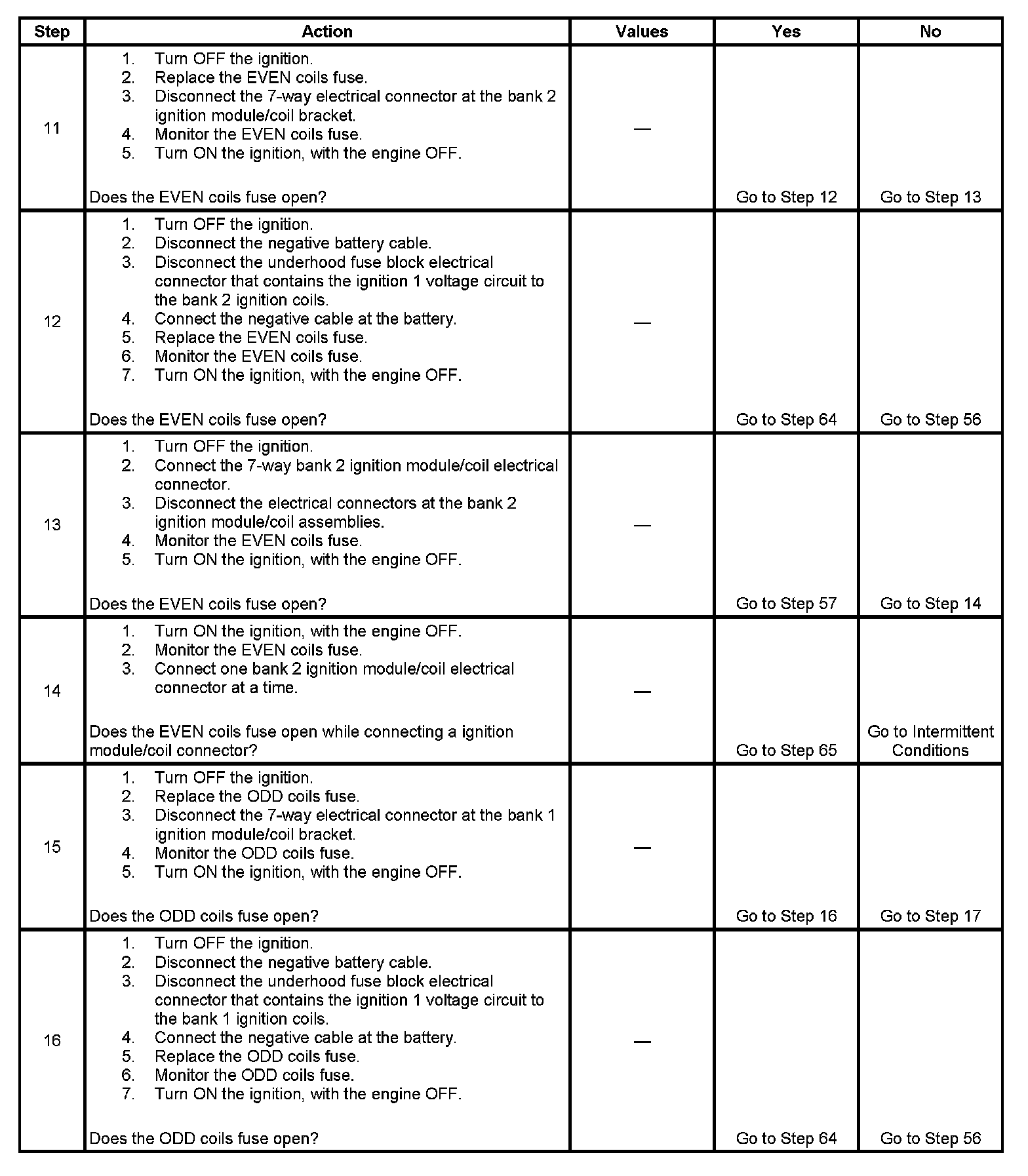 - If the ODD coils or EVEN coils fuse opens, this will also result in the loss of ignition 1 voltage to the odd or even fuel injectors.