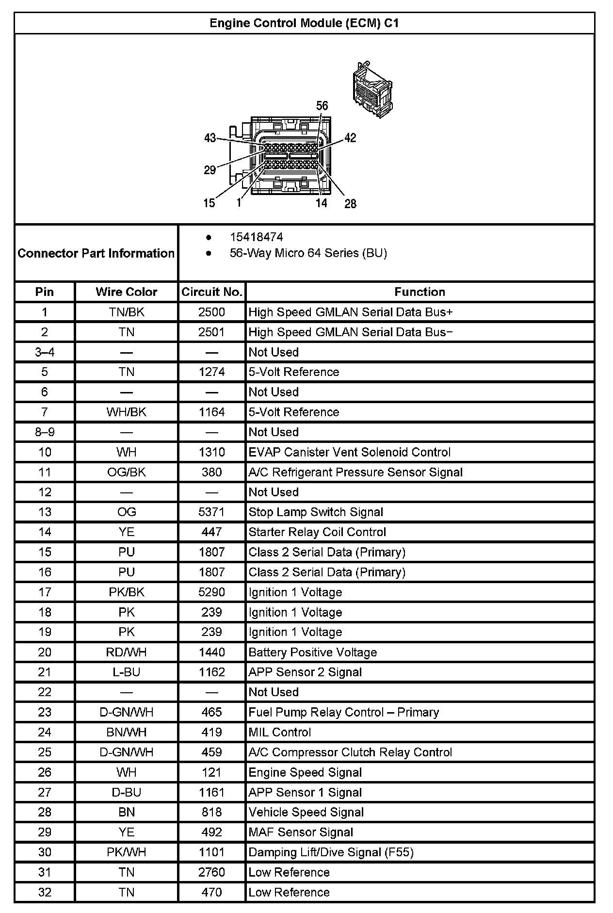 Engine Control Module (ECM) C1 (Part 2):
