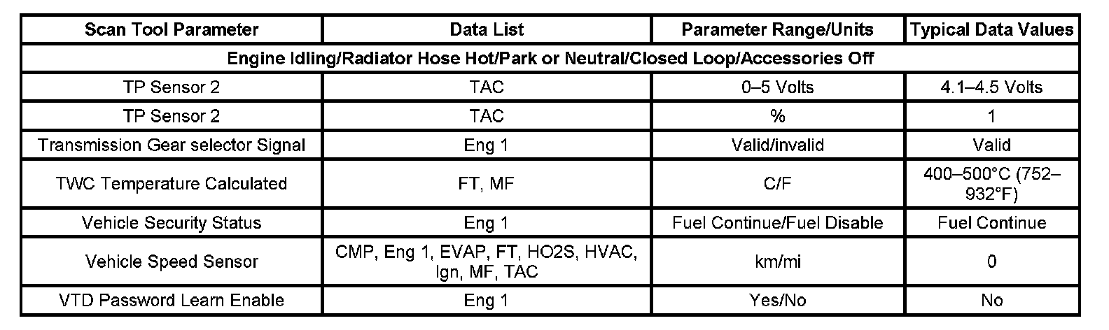 Only the parameters listed below are referenced in this service data for use in diagnosis. If all values are within the typical range described below, refer to Symptoms - Computers and Control Systems for diagnosis. - Symptoms - Engine Controls