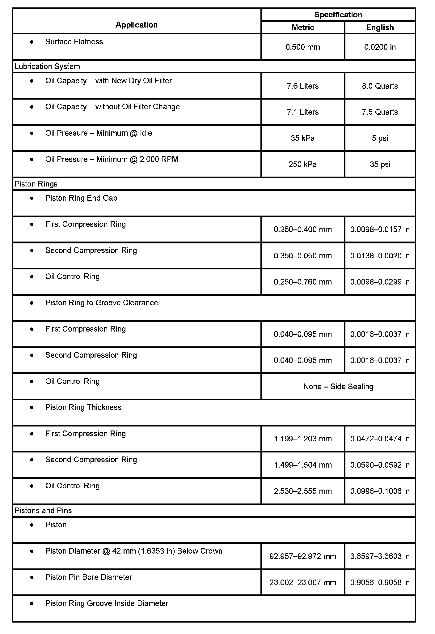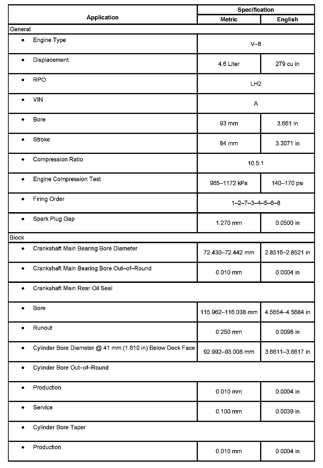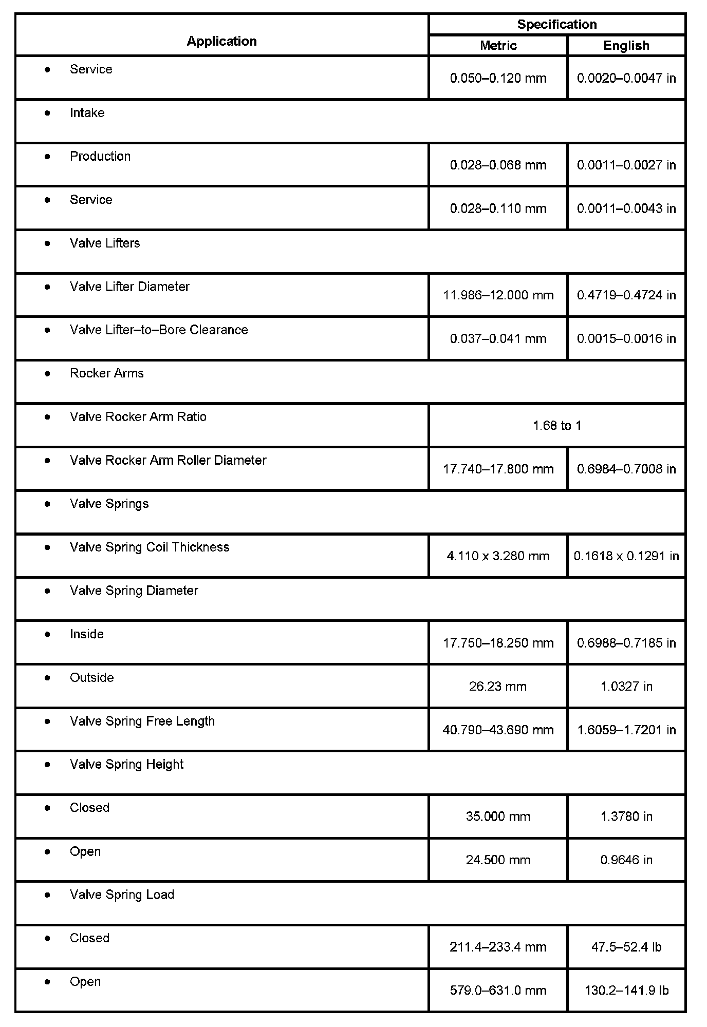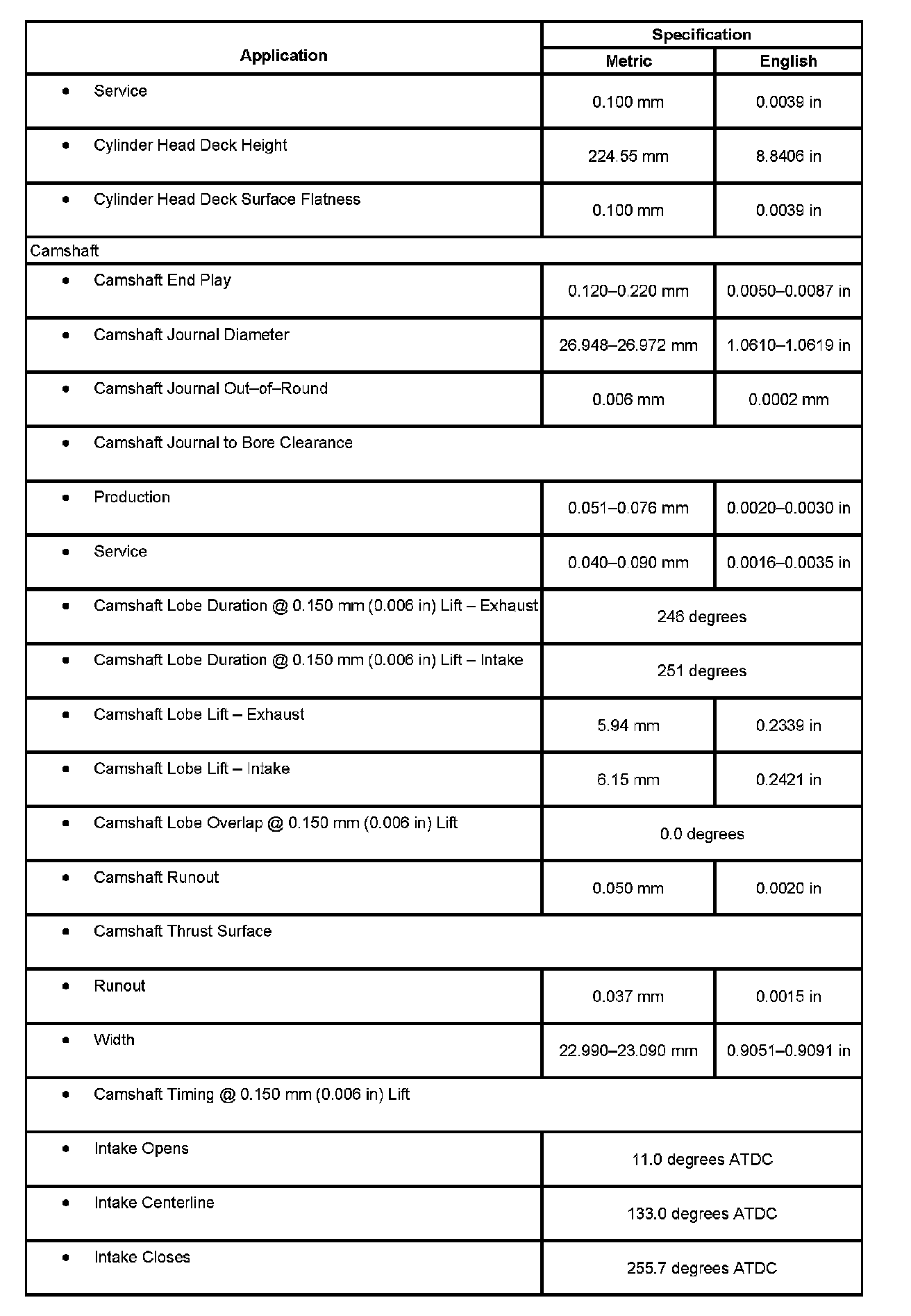 Engine Mechanical Specifications: