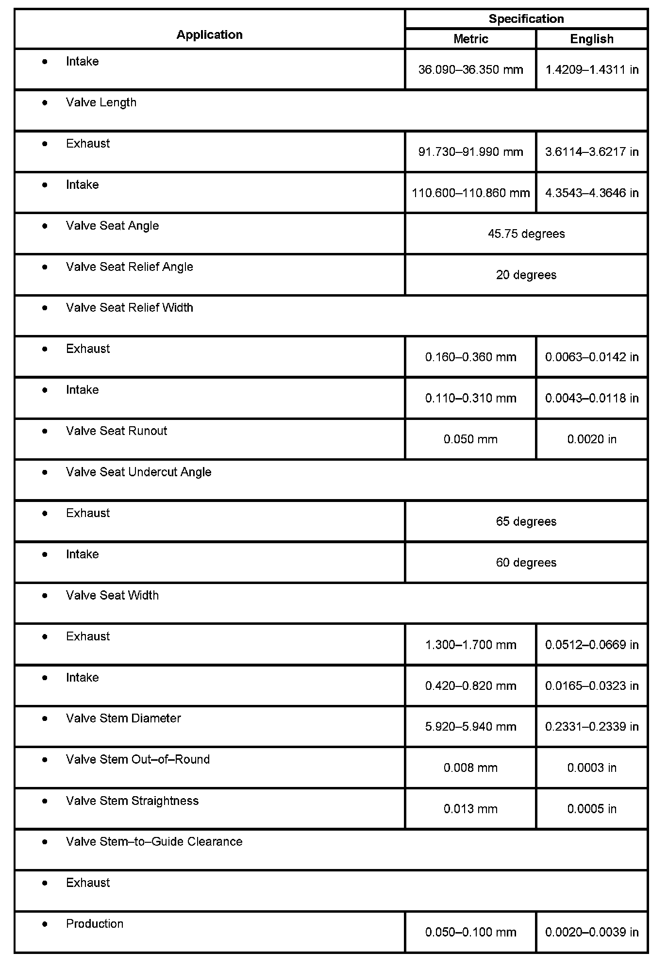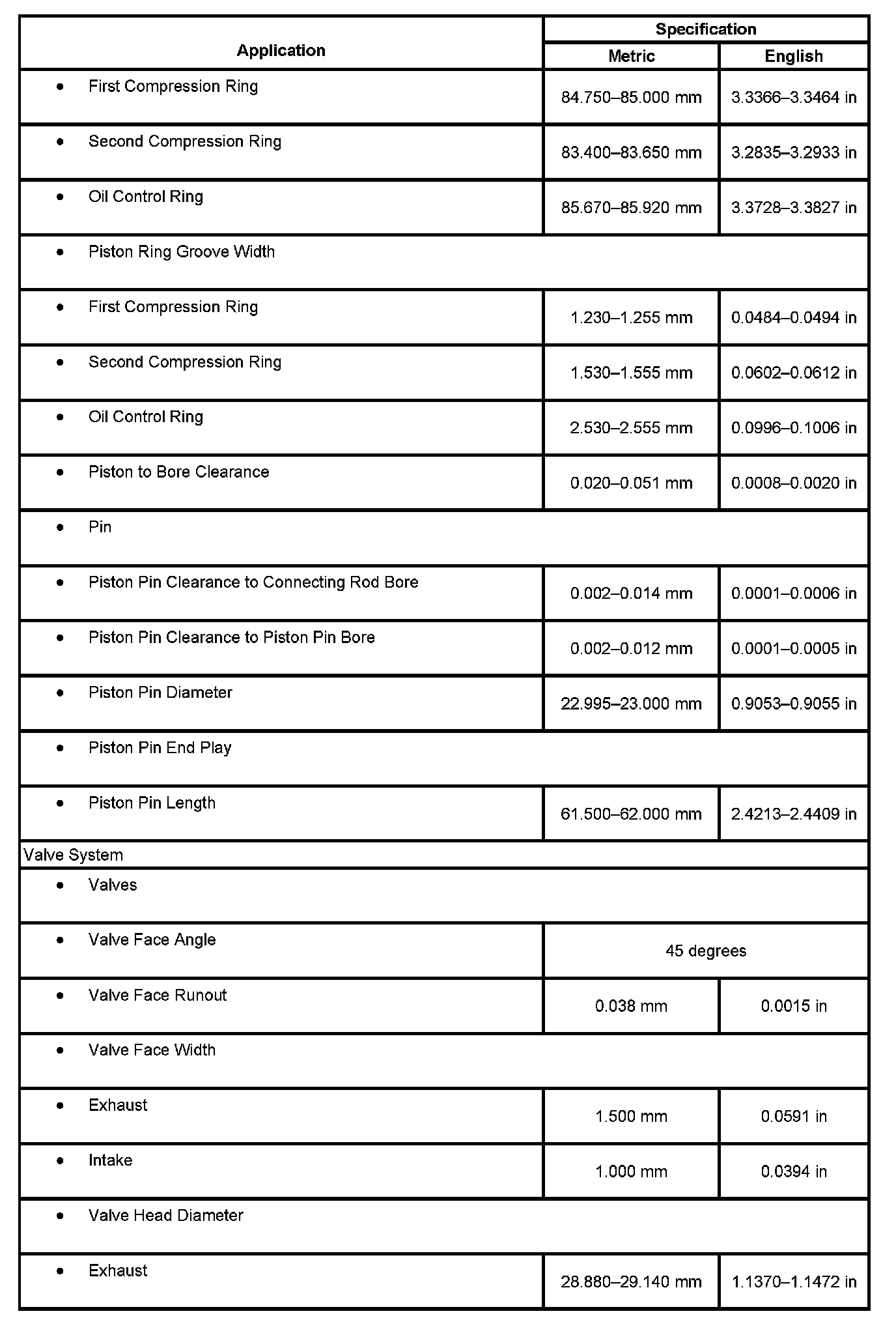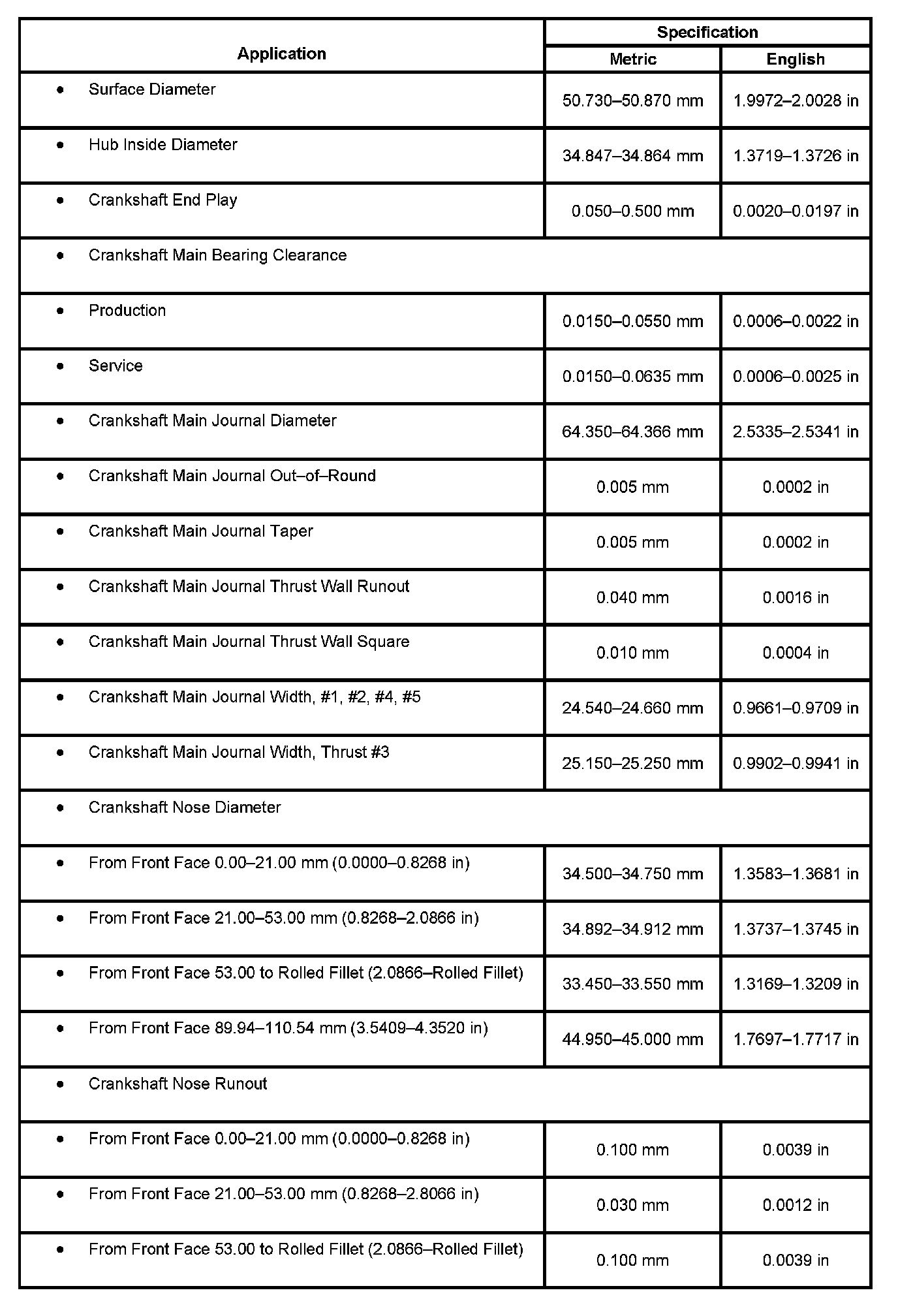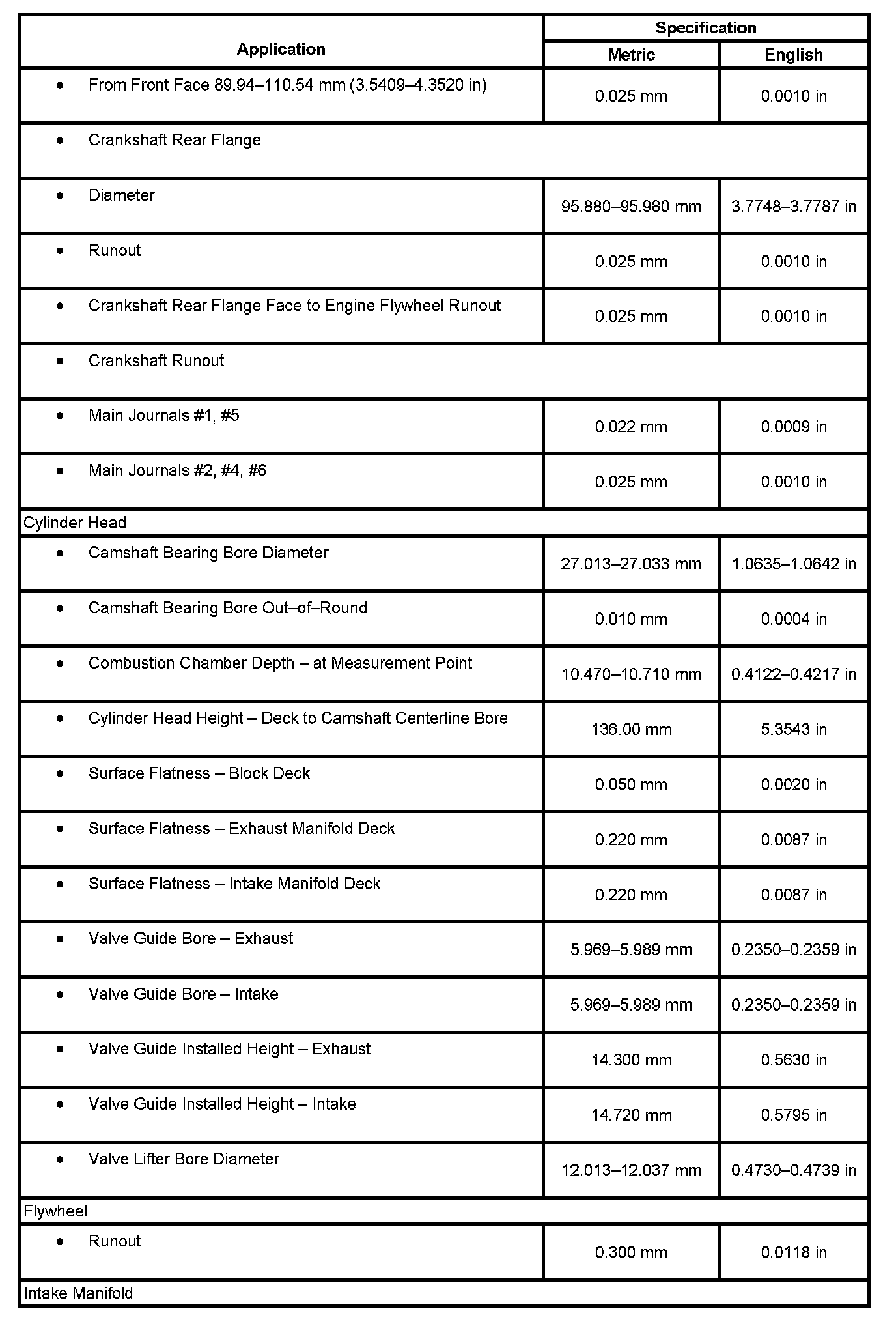 Engine Mechanical Specifications: