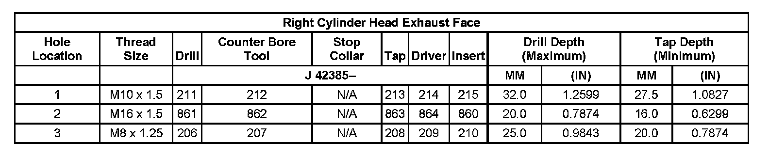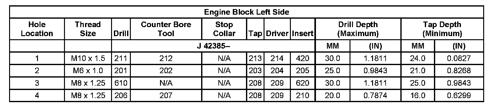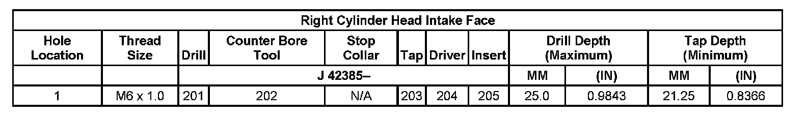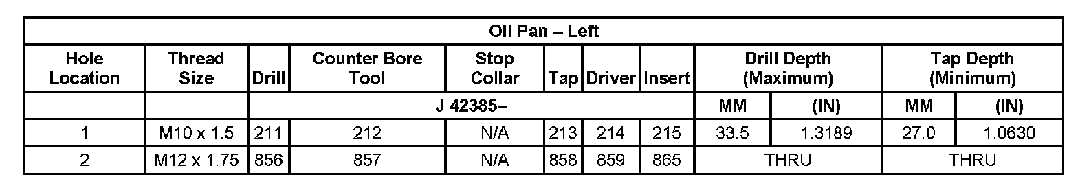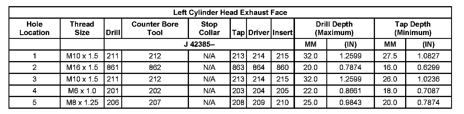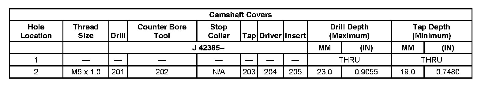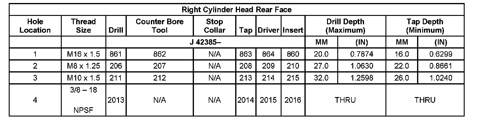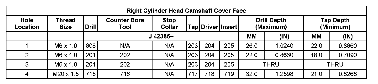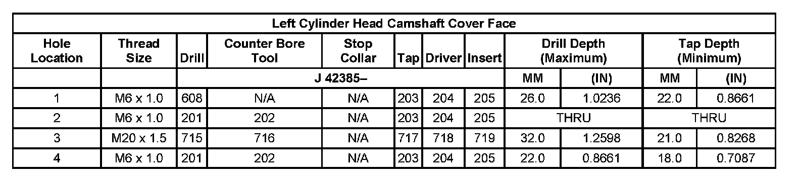 Thread Repair Specifications Left Cylinder Head Camshaft Cover Face: