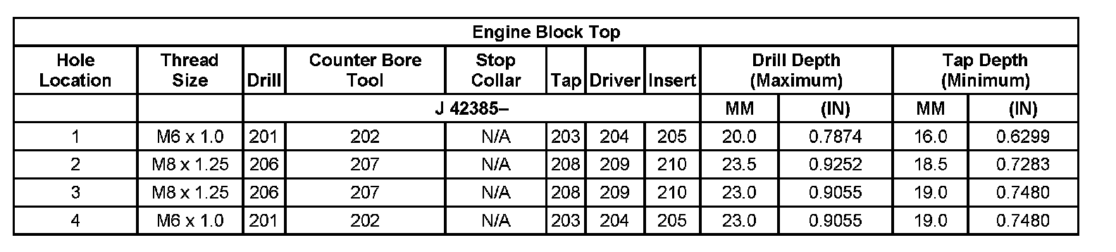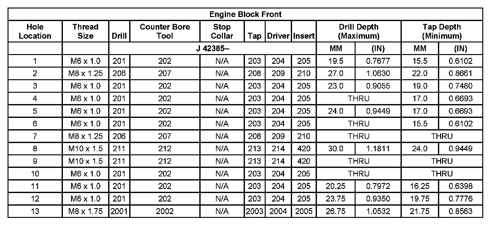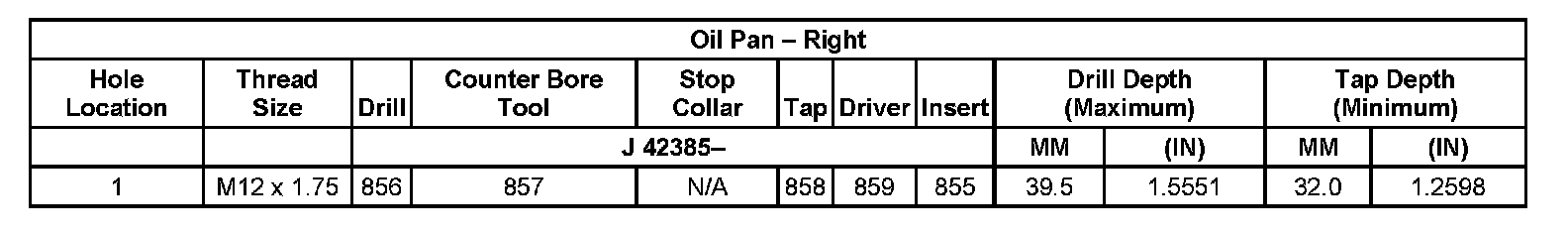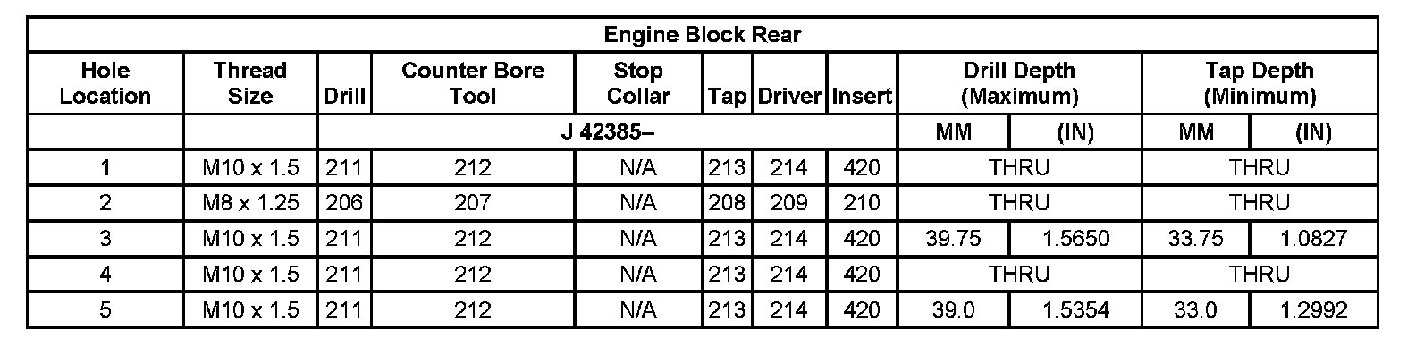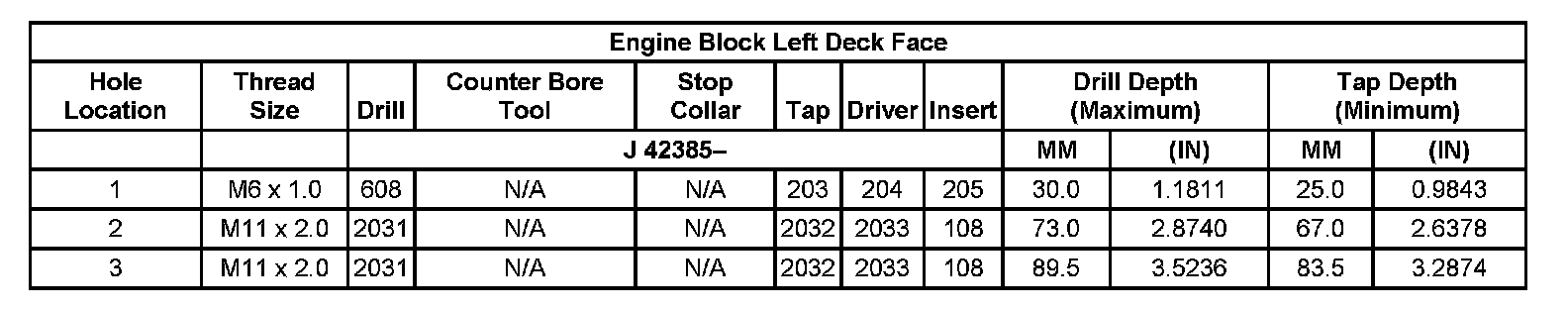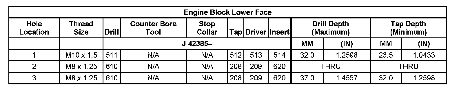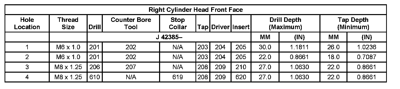 Thread Repair Specifications Left Cylinder Head Camshaft Cover Face: