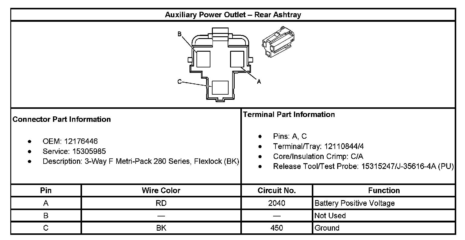 Auxiliary Power Outlet - Rear Ashtray: