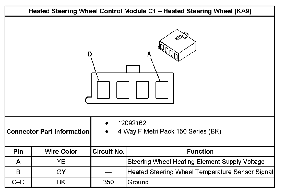Heated Steering Wheel Control Module C1 - Heated Steering Wheel (KA9):