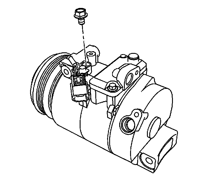 3. Add the total system capacity of PAG oil into the A/C compressor oil drain. Refer to Refrigerant System Capacities.