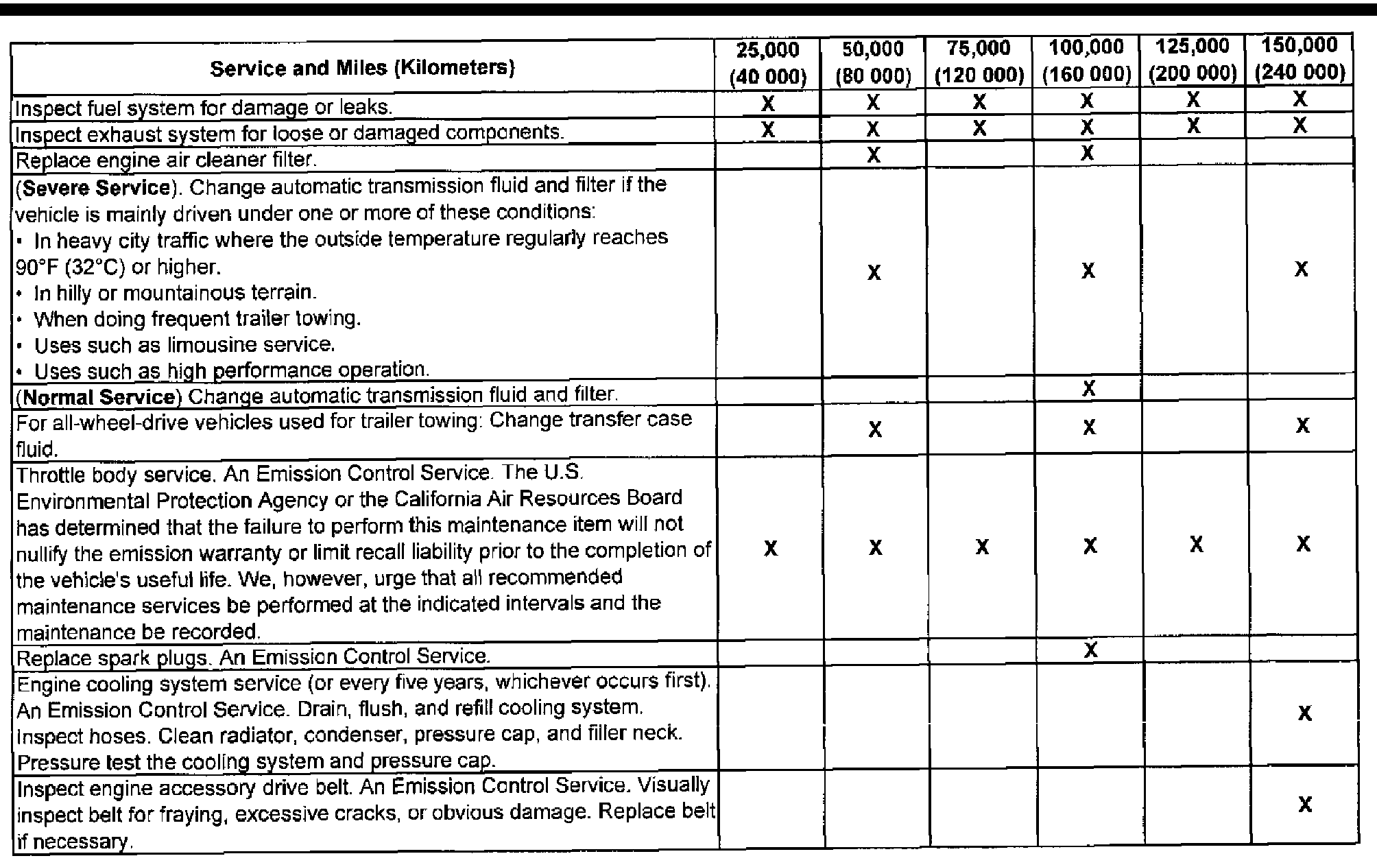 service (I or II) after the indicated miles (kilometers) shown for each item.