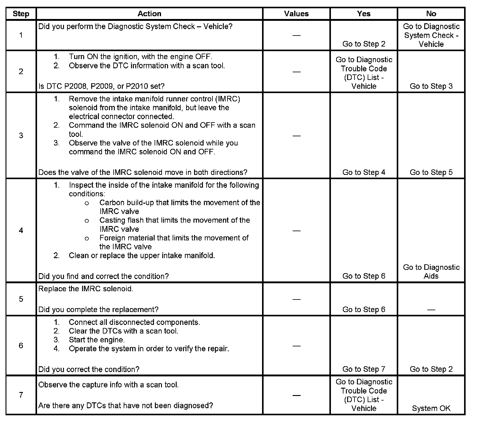 2. This diagnostic table will only diagnose the mechanical portion of the IMRC solenoid. If there is a DTC set for the IMRC solenoid, refer to the appropriate DTC table.