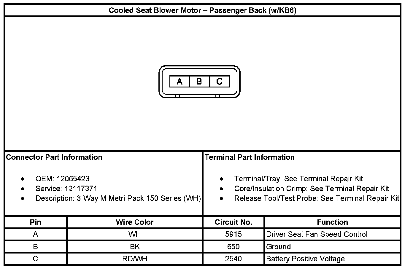 Cooled Seat Blower Motor - Passenger Back (With RPO Code KB6):