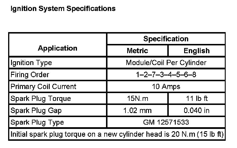 Ignition System Specifications: