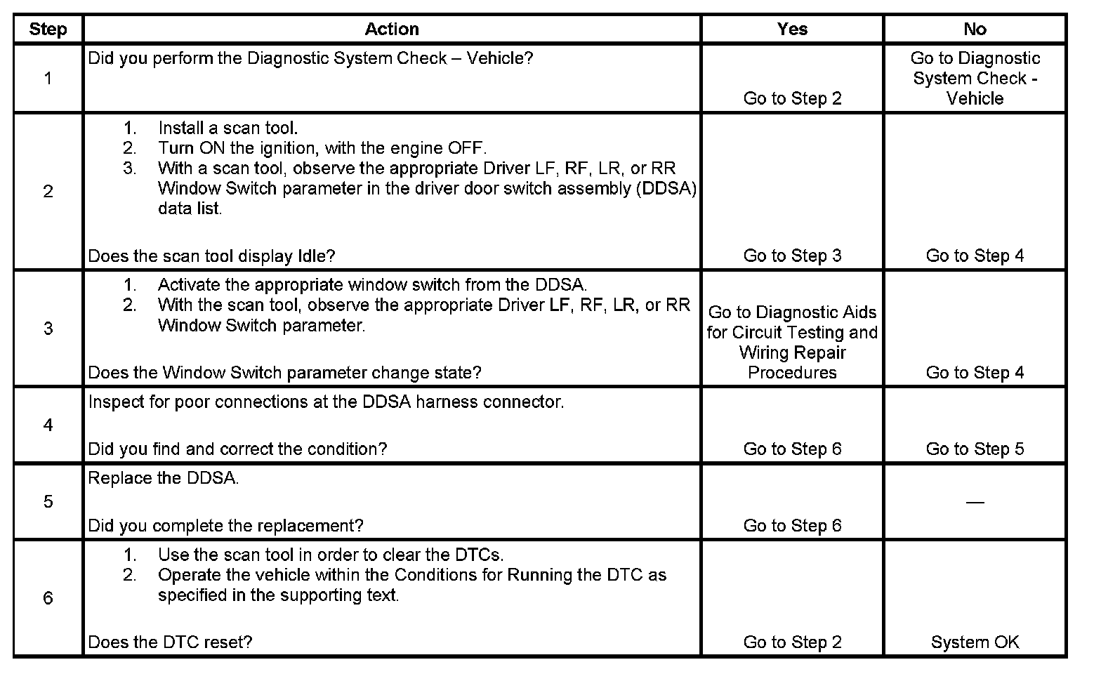 - If a DDSA WINDOW DOWN switch is closed for more than 15 seconds, both UP and DOWN signals from that switch will be ignored until the WINDOW DOWN input is no longer detected, or the ignition is cycled from OFF to RUN.