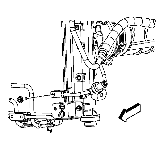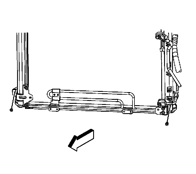 15. Remove the power steering cooler line to condenser retaining bolts.