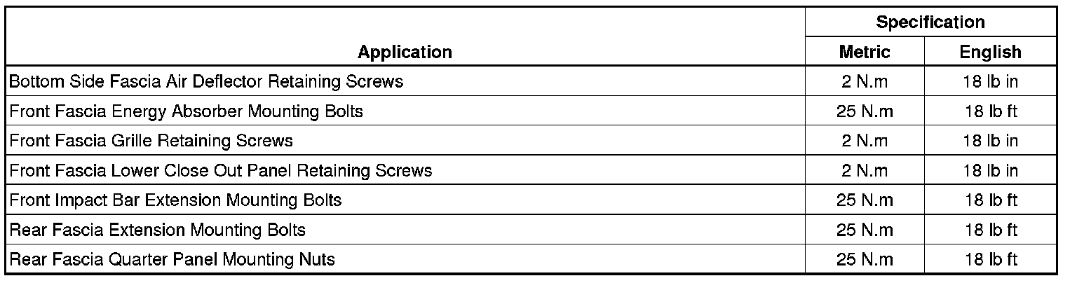 Bumper: Specifications