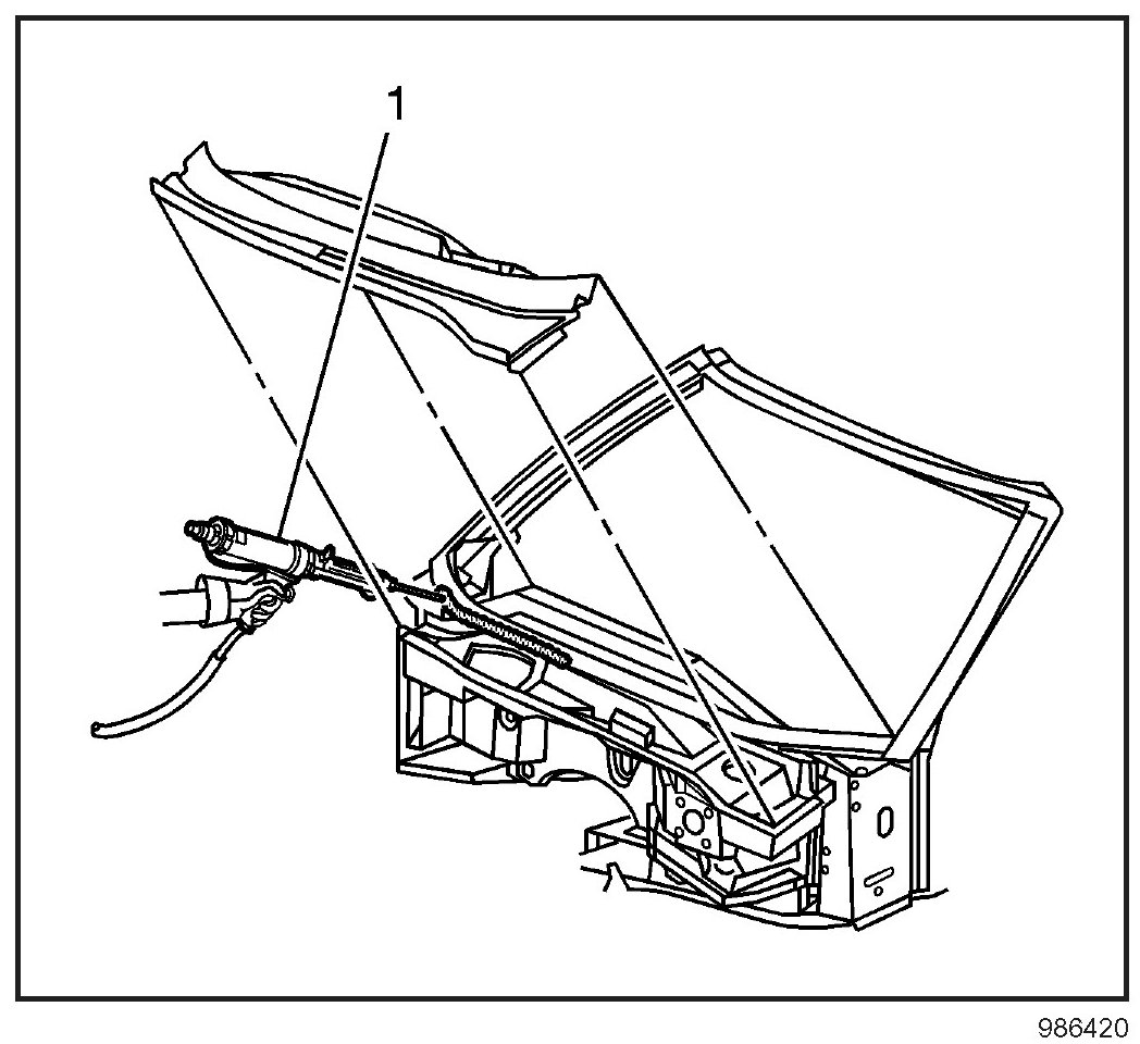 13. Apply a consistent bead of structural adhesive (1) to the bonding surfaces to mate with the upper plenum. Refer to Sheet Molded Compound (SMC) Panel Bonding.