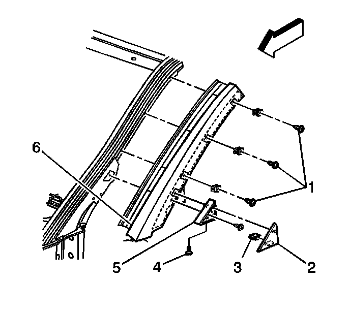 2. Remove the lower screw (4) from the side window filler panel applique.