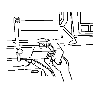 7. Using the J 45689 (1) insert the probe end into the two small openings of the plastic quick joint.