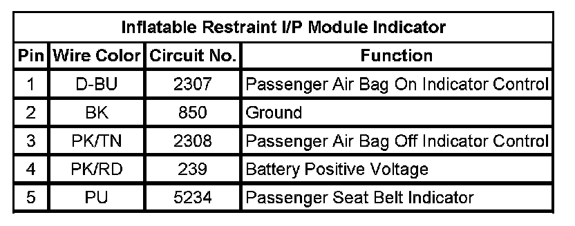 Inflatable Restraint I/P Module Indicator