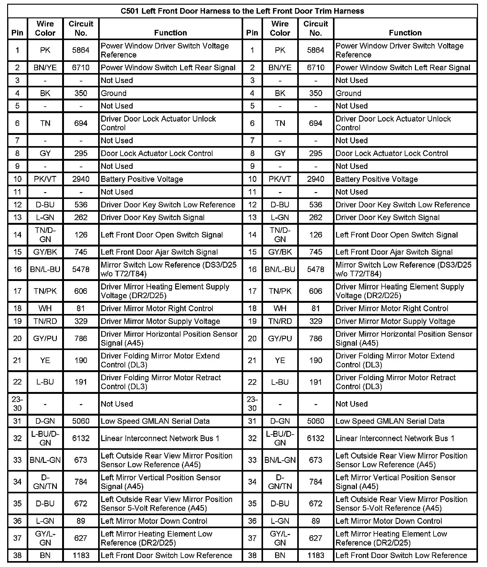 C501 Left Front Door Harness to the Left Front Door Trim Harness