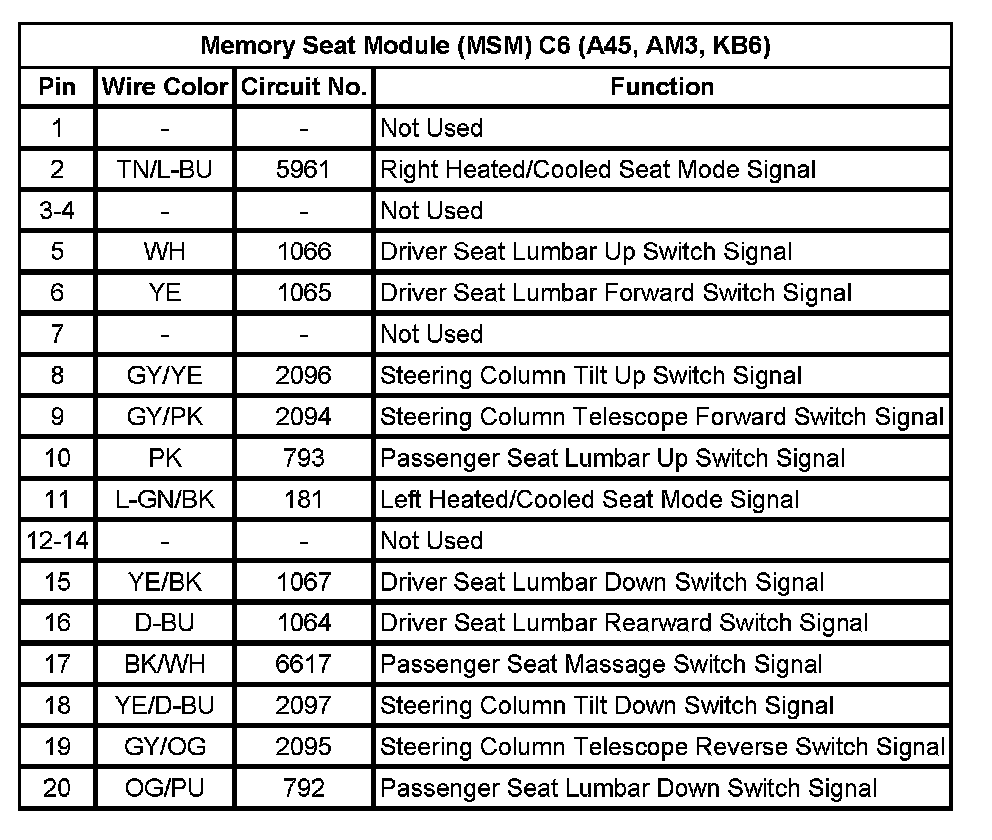 Memory Seat Module (MSM) C6 (A45, AM3, KB6)