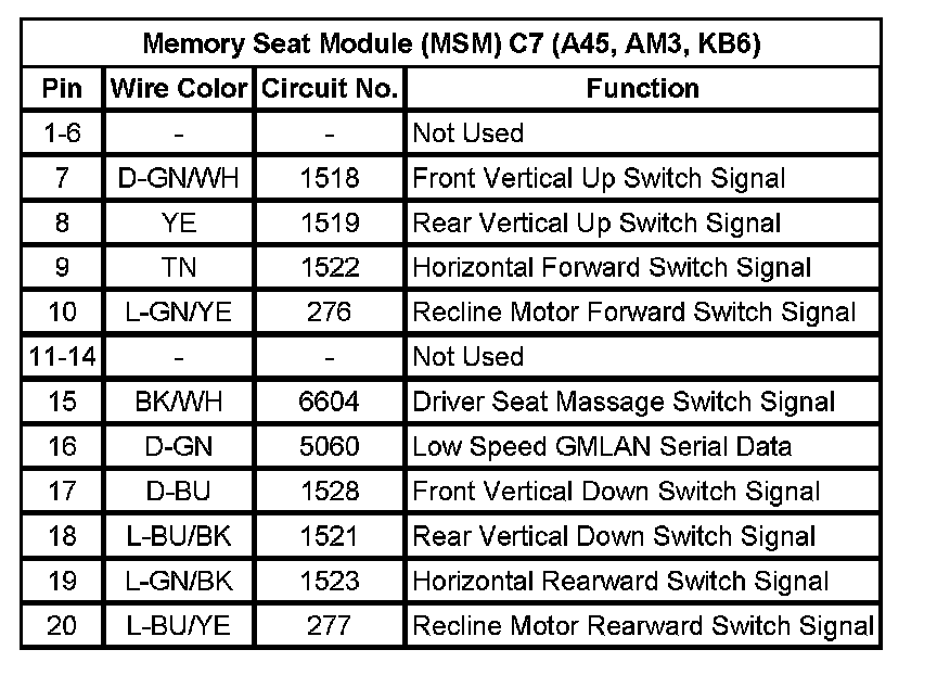 Memory Seat Module (MSM) C1 (A45, AM3, KB6)