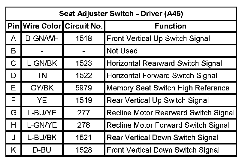 Seat Adjuster Switch - Driver (A45)