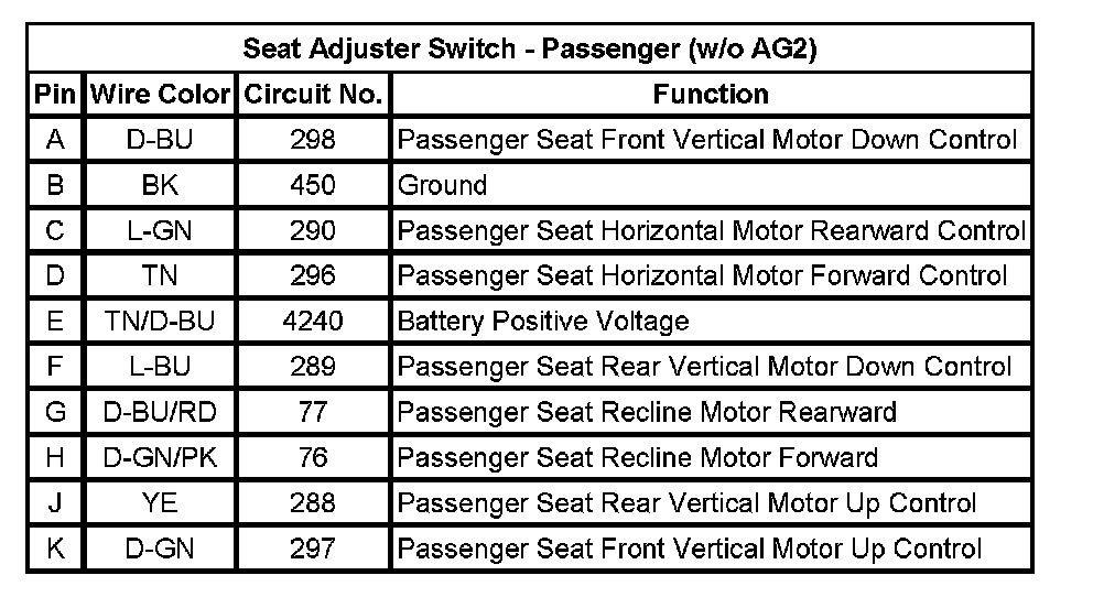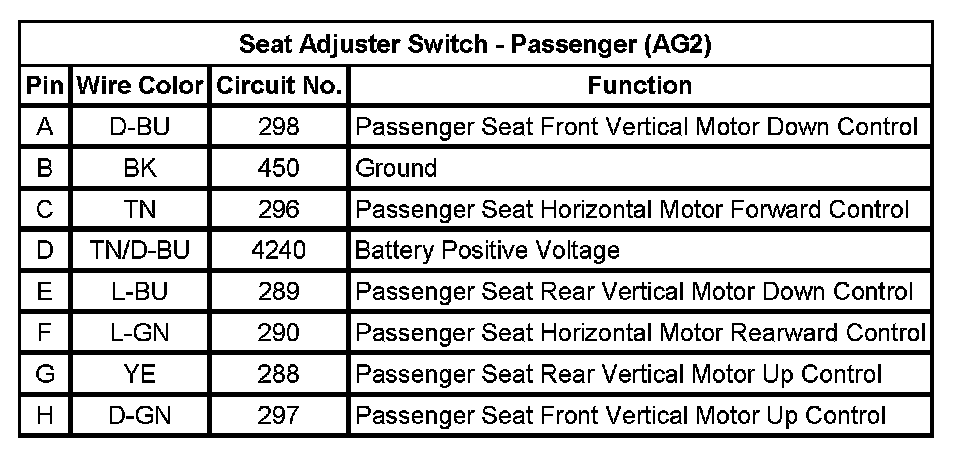 Seat Adjuster Switch - Passenger (AG2)