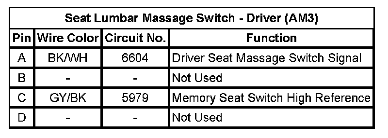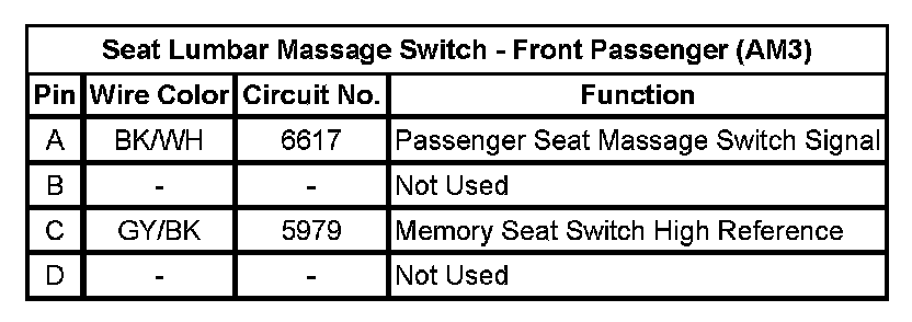 Seat Lumbar Massage Switch - Front Passenger (AM3)