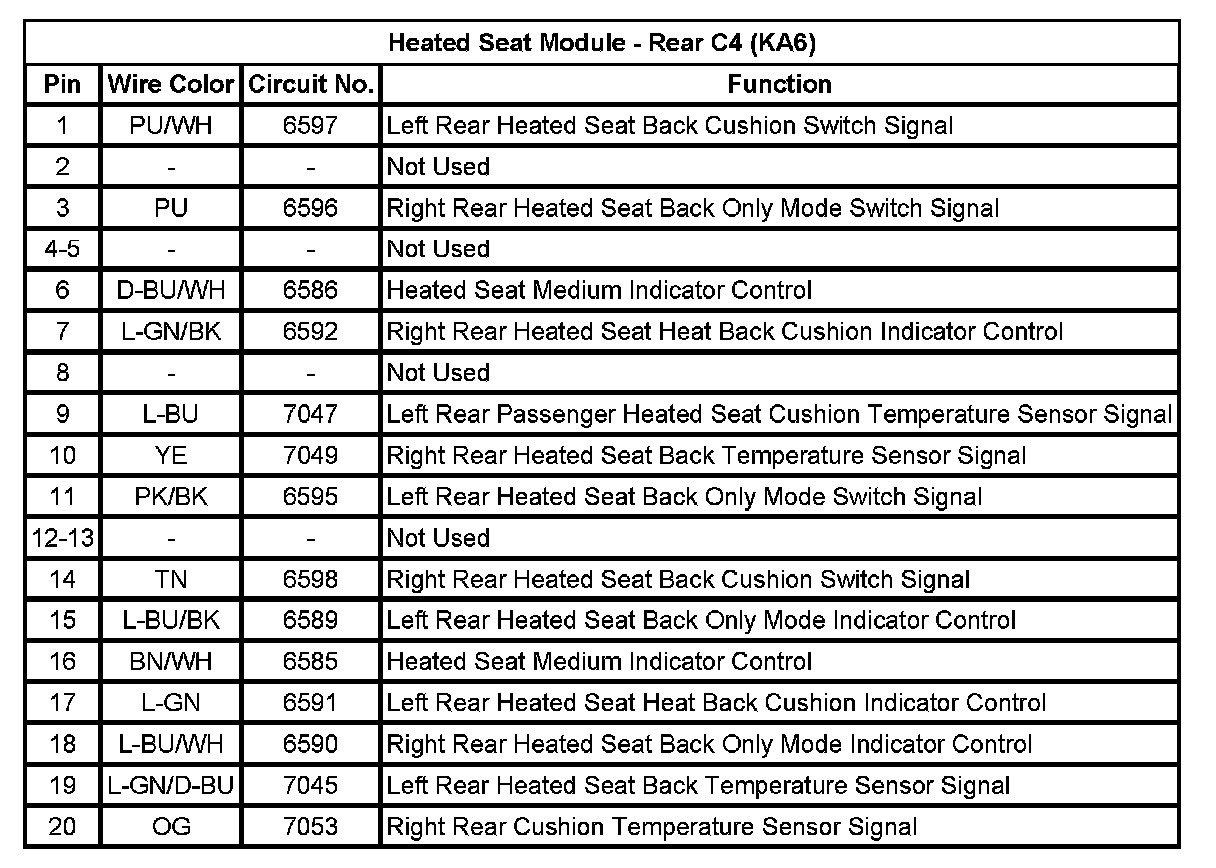 Heated Seat Module - Rear C4 (KA6)