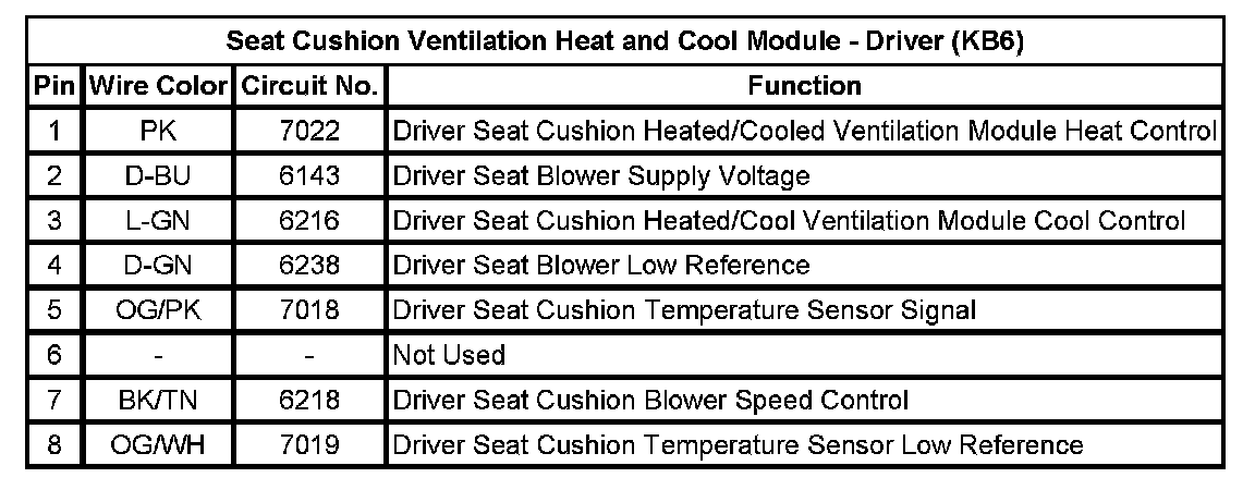 Seat Cushion Ventilation Heat and Cool Module - Driver (KB6)