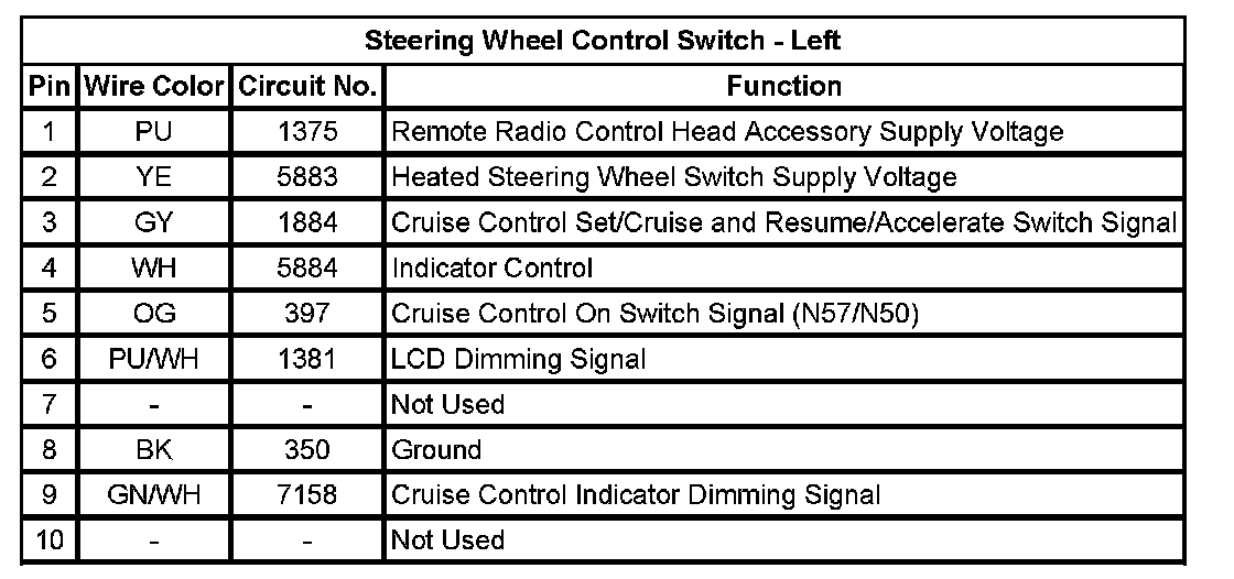 Steering Wheel Control Switch - Left