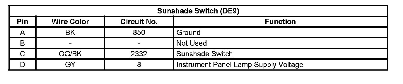 Sunshade Switch (DE9)