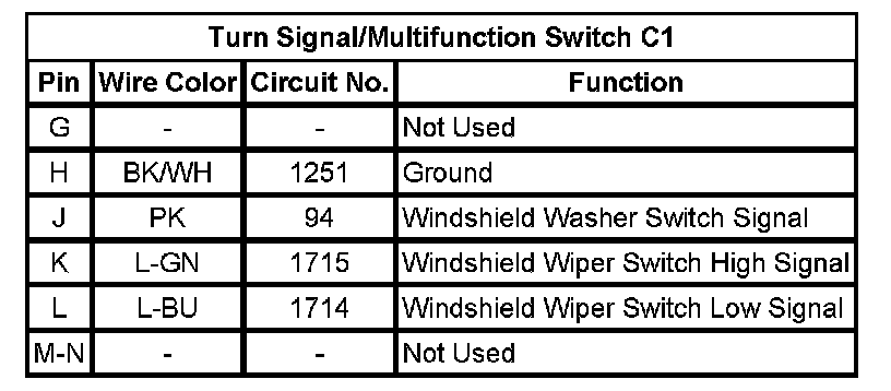 Turn Signal/Multifunction Switch C1