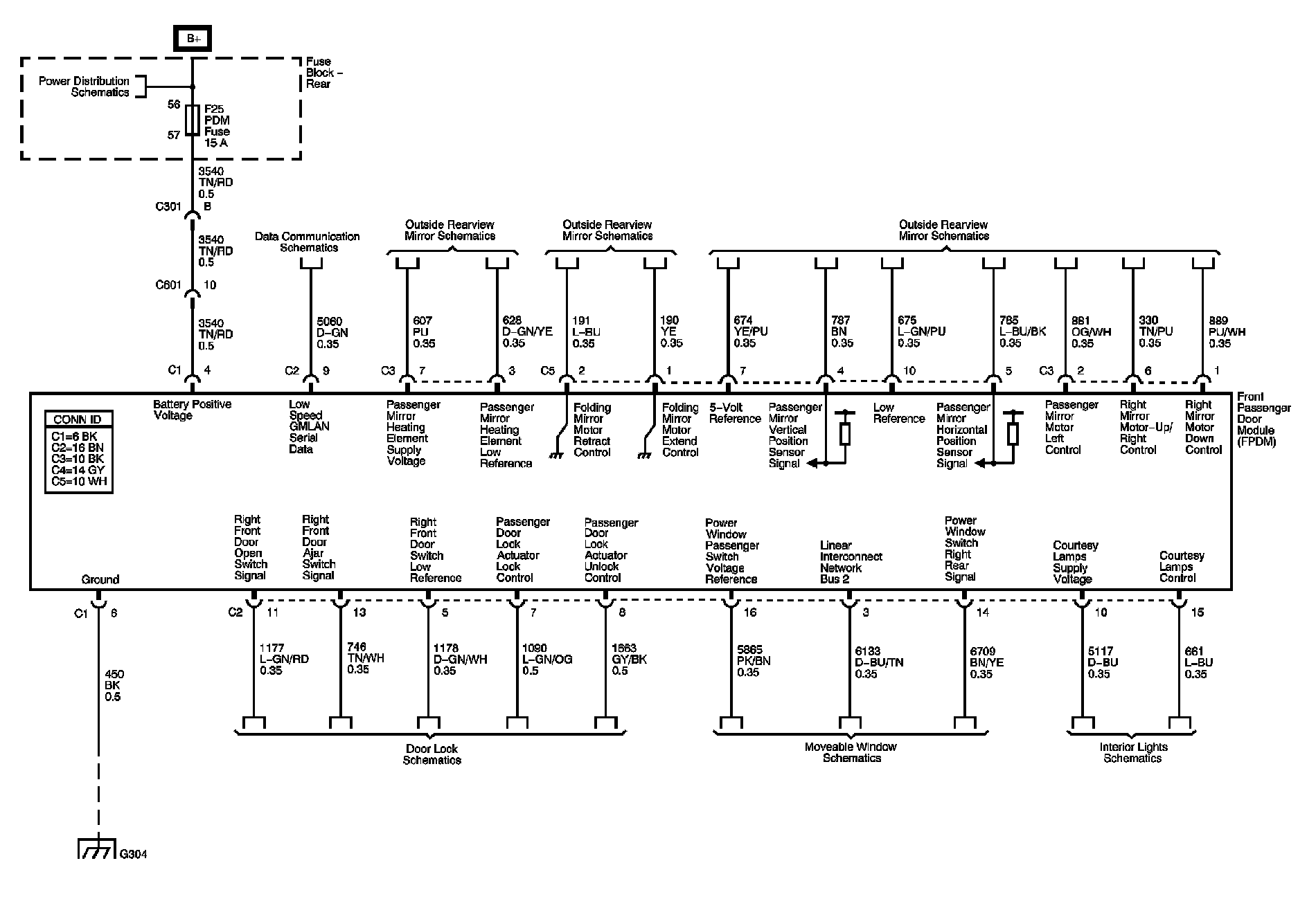Locations: The locations for the Connectors, Grounds, Splices, and Grommets shown within these diagrams can be found via their numbers at Vehicle Locations. Locations