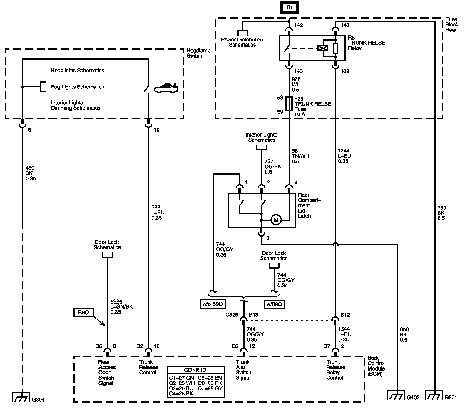The locations for the Connectors, Grounds, Splices, and Grommets shown within these diagrams can be found via their numbers at Vehicle Locations.